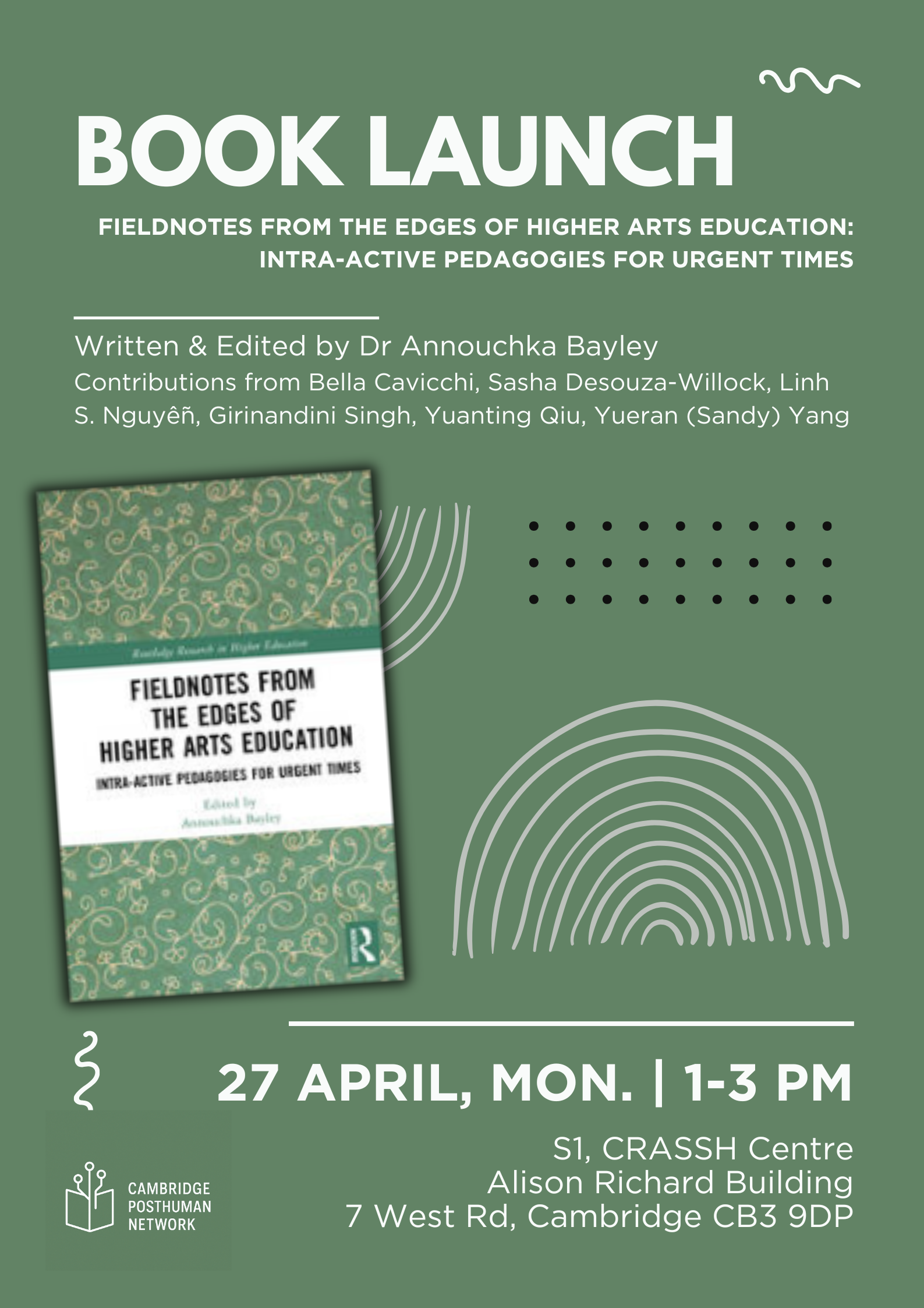 An edited volume written and edited by Faculty of Education Associate Professor Annouchka Bayley, featuring chapters from Girinandini Singh, Linh S. Nguyễn, Yuanting Qiu, Sandy Yang, Bella Cavicchi, and Sasha Desouza-Willock has recently been published with Routledge. The book, titled "Fieldnotes from the Edges of Higher Arts Education: Intra-active Pedagogies for Urgent Times”, explores emergent practices in higher education pedagogy that use the arts, new materialisms, posthumanisms, and radical pedagogies to intra-actively reconfigure approaches to transdisciplinary learning and teaching.
