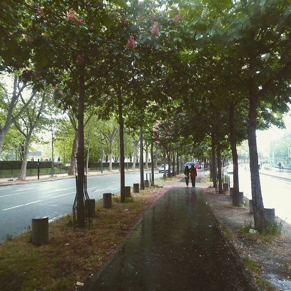 As we walked around the area afterward, intending to head back to the main Champs Élysées avenue, we stumbled around a corner and I was met with my very first sight of the Eiffel Tower at last! We walked past the Seine and along a tree-lined boulevard path all the way to the base of the tour.