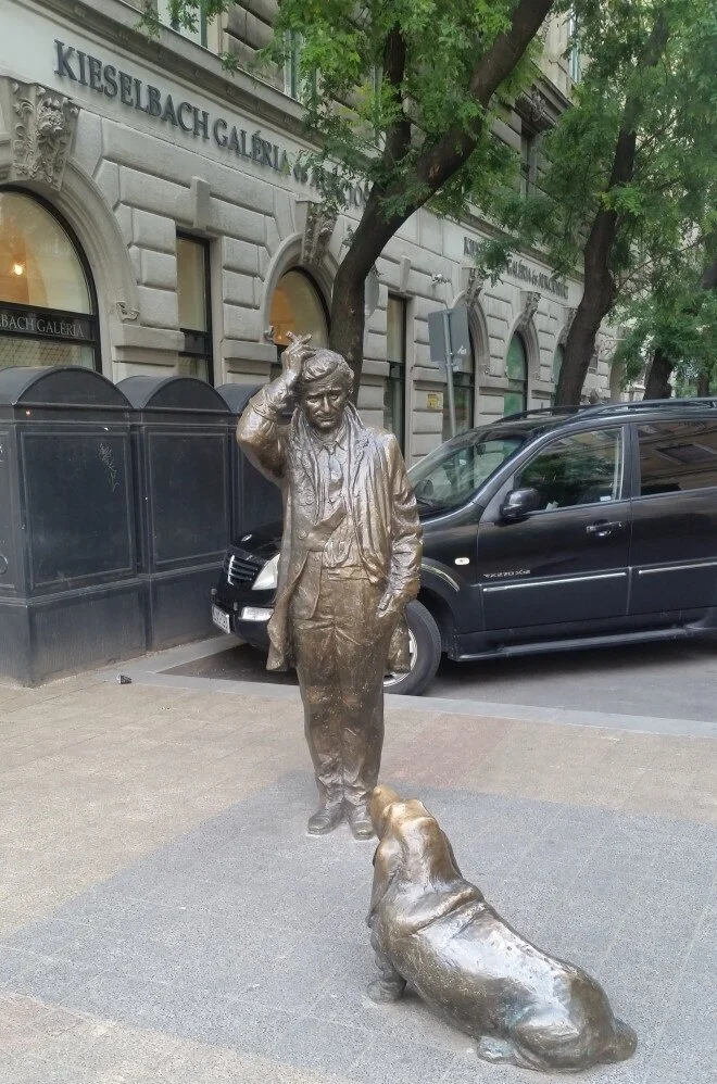 One of the statues that we stumbled upon was the Peter Falk statue at the start of Falk Miksa street.