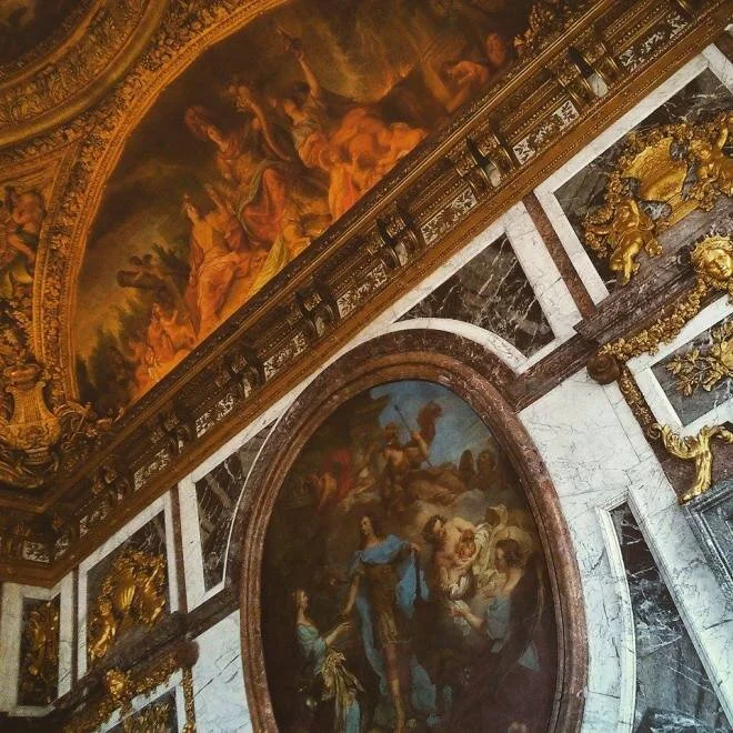 Every big room in Versailles was covered in decor from floor to ceiling. Like the Galerie D'Apollon in the Louvre, every inch was art.