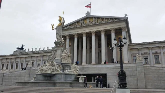 I love that the central statue in front of the building is of Athena, the goddess of civilization and wisdom, and patroness of the first democratic city, Athens. It's a classic Athena pose, with Nike, the Goddess of Victory, in her hand. My inner Greek mythology nerd got very excited. In this particular statue, she is flanked by representations of Justice and the four rivers of the Habsburg Empire.