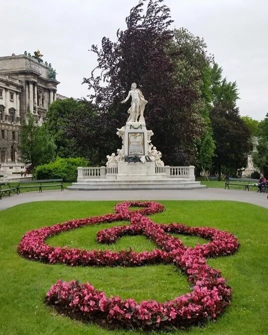 Julie and I split off and got street food for dinner, eating it on a bench in the Burggarten, in front of this beautiful view of a monument to Mozart.