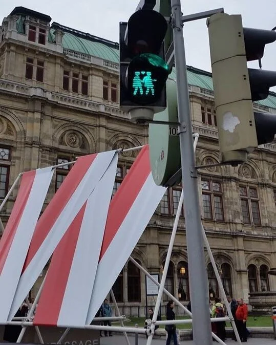 Afterwards, we stopped at a café at Museum-Quartier to rest. It was a rather cold and cloudy day out, but luckily no rain. Otherwise, the walk was nice since the streets were so clean and wide and there were beautiful buildings everywhere. Also, Vienna has cute streetlights that show a couple instead of a single person walking.