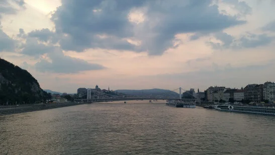 We stayed in the pool right until closing time at 8, when someone came to make us leave. It was just around sunset then, when we crossed the river on the Liberty bridge.