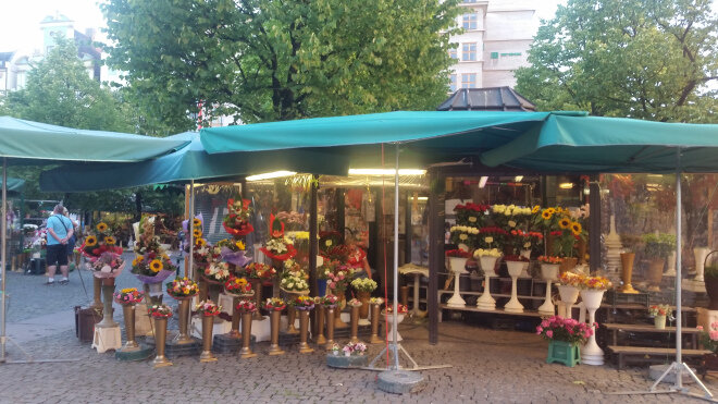 We passed the main square and the 24/7 flower market on our way to dinner -- a free group dinner downtown that consisted of great salad, pierogies, potatoes, and sausages.