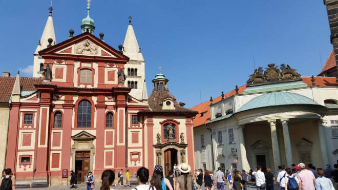 Our first tour of Prague started in the early afternoon at the Strahov Monastery, founded in 1143. We only passed by before walking to Hradčanské Square, situated right beside the Prague Castle. The castle itself was more of a complex, consisting of many nice buildings that we saw from the outside.
