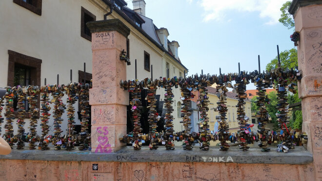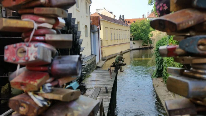 We walked around Castle Hill for an hour, then headed down towards Kampa island, passing by it on a love lock bridge that ran across the artificial waterway.