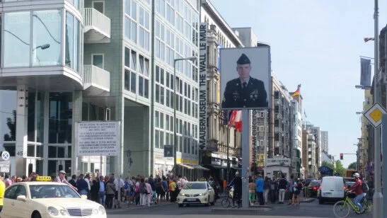 From there, we walked to Checkpoint Charlie, the best known Berlin-wall crossing point during the Cold War.