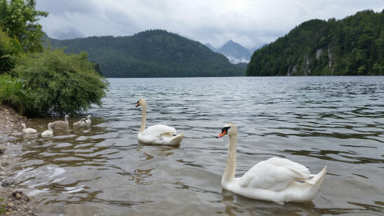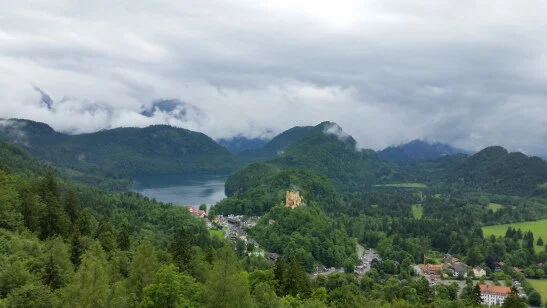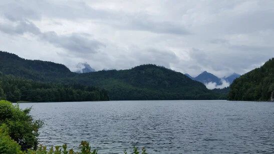 The morning of our day trip to Füssen dawned cold and rainy as it had in southern Germany for the past few days. We had to catch a couple train connections to get there, and unfortunately, a 10 minute delay caused us to miss a connection and wait another hour. Even though we had gotten up at 7, by the time we got our tickets and grabbed a quick lunch, it was past 1PM.