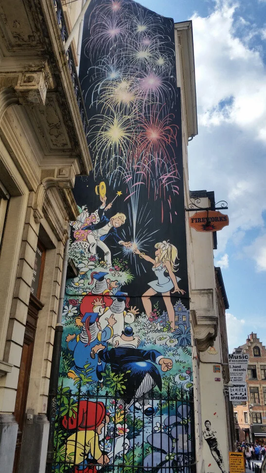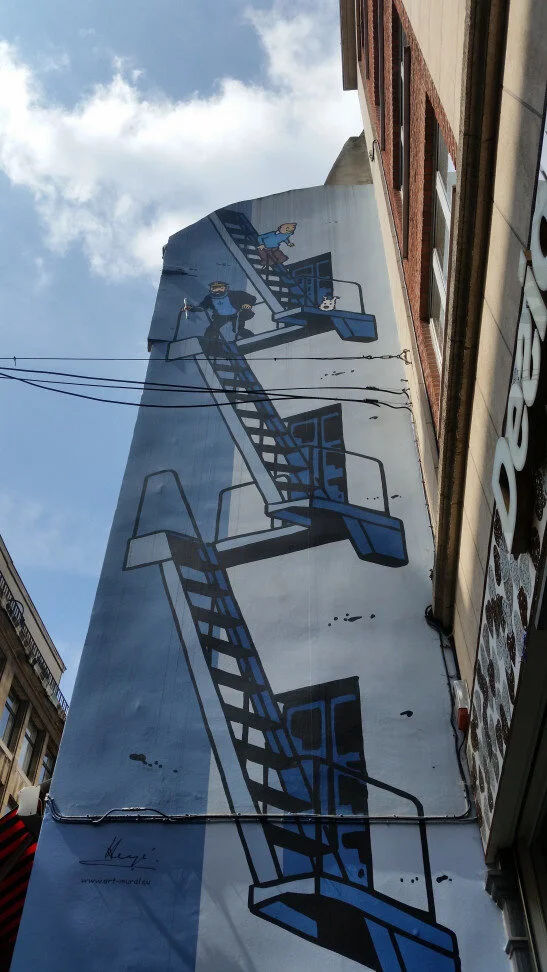 On many of the street walls, there were also murals featuring cartoons, such as Tintin, which originated in Belgium.
