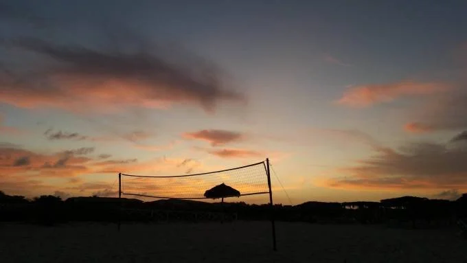 The beach in Santa Maria, which faces north, unfortunately did not offer a view of the sunset over water, but the colours were still visible even from our room.