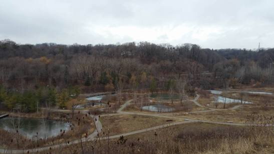 On the site, we were split into two groups, and my group went off on a hike. Our tour guide was very knowledgeable, explaining how the land had originally been purchased as farmland, but then was transformed into a brick factory when clay was discovered on the property. As this was around the time when downtown Toronto was being rebuilt after another great fire, the factory became very successful. When all the clay had been used up, however, the site was abandoned. Years later, it began to get rebuilt as a protected natural space in the city.