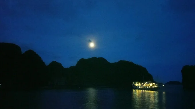 Ha Long Bay is my favourite place on earth. When we lived in Hanoi, we'd take a cruise ship out for the weekend several times a year, often on my birthday. I'd take a couple friends along with my family, spend the night in a sleeping bag on the deck, and jump off the side of the boat straight into the ocean in the day.