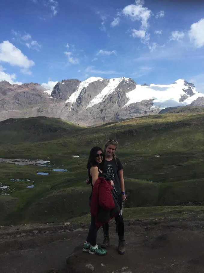 We were fortunate once more with the weather -- blue skies and not a drop of rain. The landscape was breathtaking, with hills, a snow-capped glacier peak, green fields, and herds of grazing alpaca. The climb itself was manageable as only the last bit was steep, and the views along the way equalled the peak itself.
