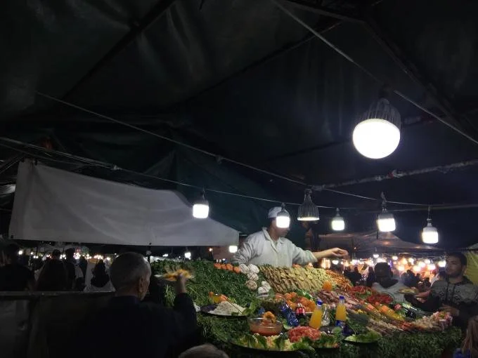 That night, as our farewell dinner, we ate street food in the medina -- couscous, bread with olives, skewers, salad -- a bit of everything to see us off before taking the public bus to our hotel and sadly saying goodbye.